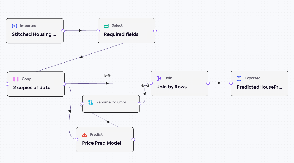 Now with this, I can feed the stitched data to a prediction pipeline and get predicted housing prices. Maybe I am using it wrong but the only issue I had is that each pipeline takes a while to finish. For a small dataset, I would expect the whole thing to be complete within seconds if not minutes.