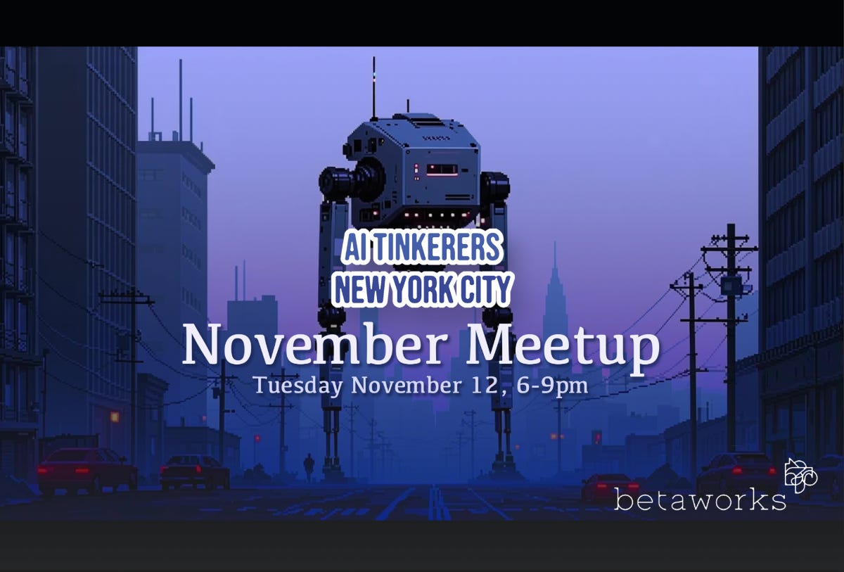 Tuesday, Nov 12, 18:00 - 21:00 EDT | AI Tinkerers November 2024 Meetup. Hosted by AI Tinkerers. Event Link