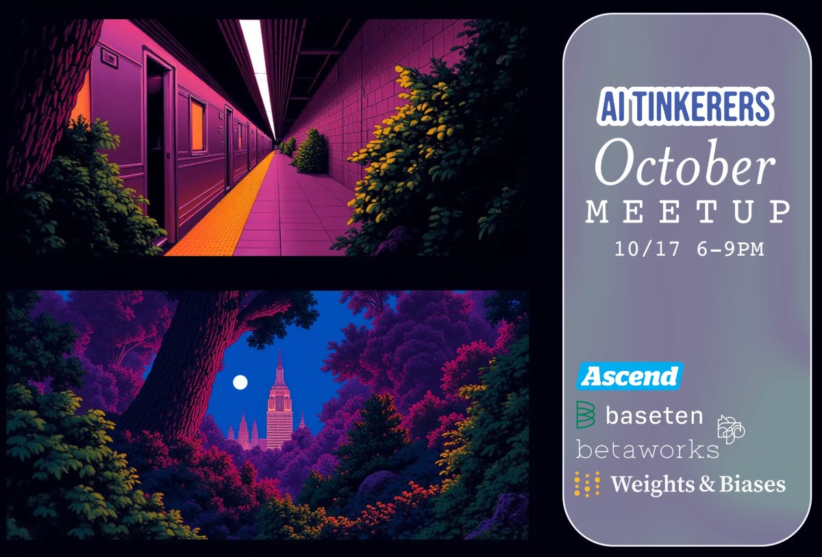 Thursday, Oct 17, 18:00 - 21:00 EDT | October Meetup at AI Tinkerers! Hosted by AI Tinkerers. Event Link