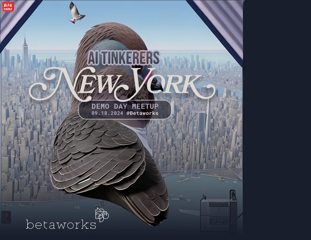 Wednesday, September 18, 2024 6:00 PM - 9:00 PM EDT | AI Tinkerers September Meetup at Betaworks. Hosted by AI Tinkerers. Event Link