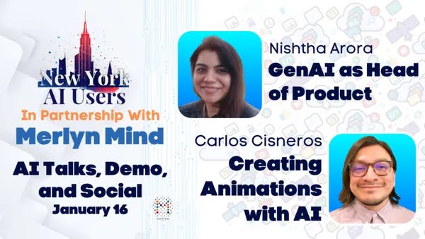 Jan.16 19:30-22:30 EST | NYC AI Users - AI Tech Talks, Demo & Social: AI Product Management and Animation. Hosted by David Cunningham @ New York AI Users. In Person RSVP.