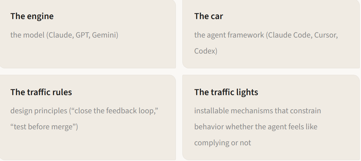 (For the full technical breakdown — mechanisms, code patterns, open-source tools — see the companion doc: Harness Engineering: A Technical Reference.)