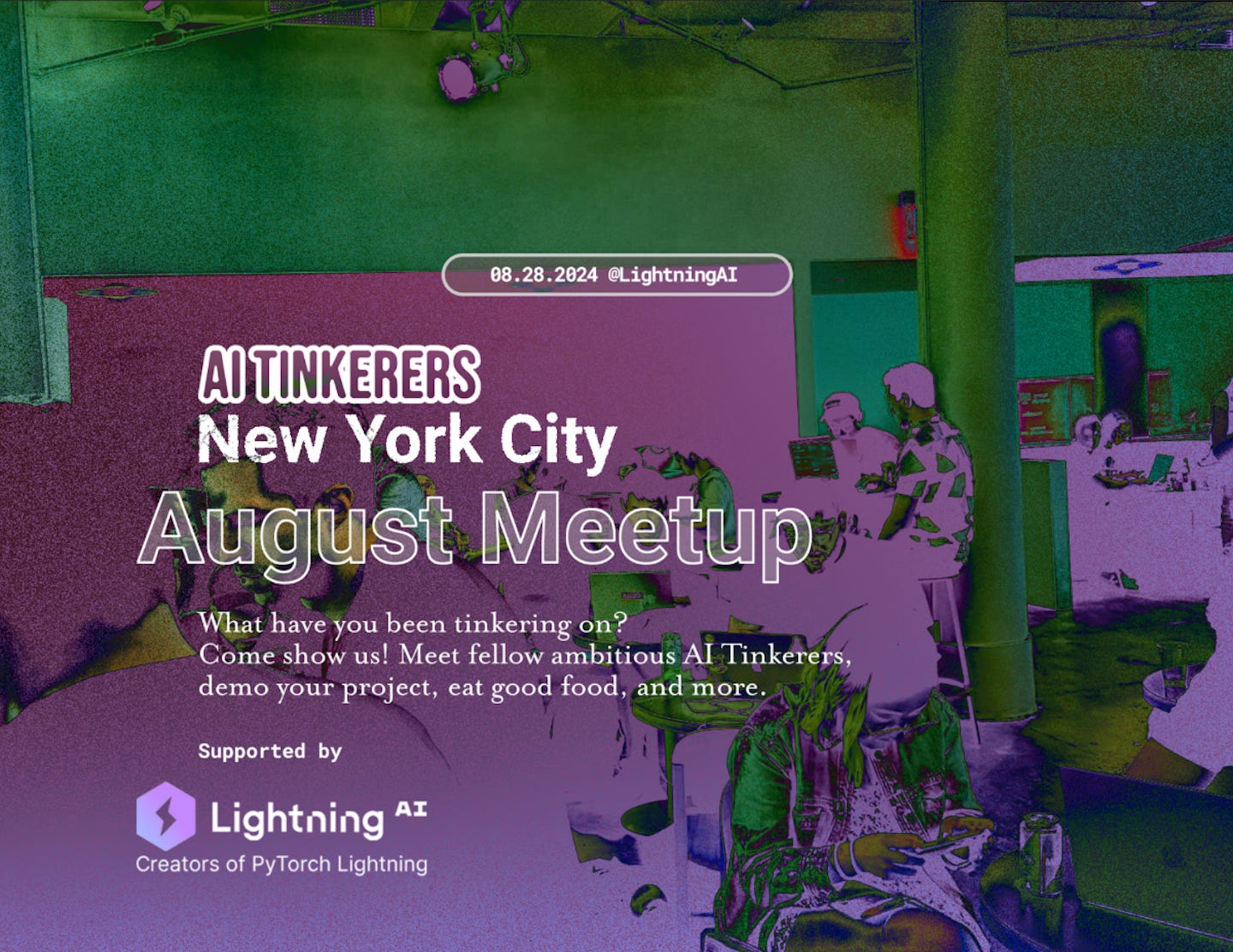 Wednesday, August 28, 2024 6:00 PM - 9:00 PM EDT | AI Tinkerers August Meetup. Hosted by AI Tinkerers. Event Link
